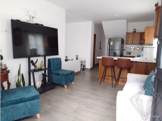 Cuenta con un área construida de 61.52 metros cuadrados y está ubicada en un primer piso. Dispone de sala comedor, cocina integral en L, garaje para carro pequeño, baño social con ducha y dos alcobas, cada una con closet, siendo la principal la que cuenta con baño privado. La propiedad ofrece buenos acabados y una distribución cómoda y funcional.
